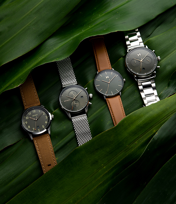 The 38mm Nova channels an awe for the celestial with a future-forward design and dual timezone functionality. The Tropic Haze colorway is on island time with a lush green dial, refreshing silver steel and sunlit gold accents.